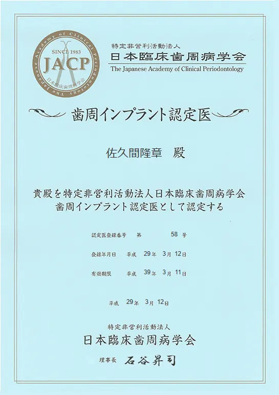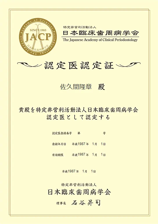 | 日本臨床歯周病学会 歯周インプラント認定医 | |